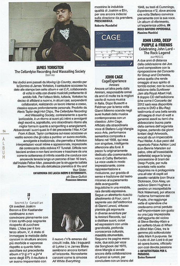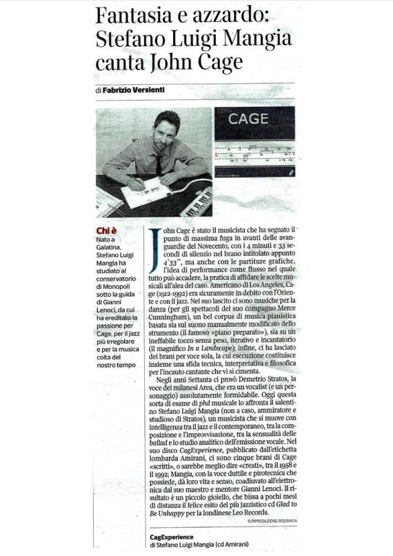 Stefano Luigi Mangia invece omaggia il John Cage della produzione vocale, con "John Cage CagExperience", in cui figurano alcuni brani del compositore americano dediti a quel settore. Si tratta di